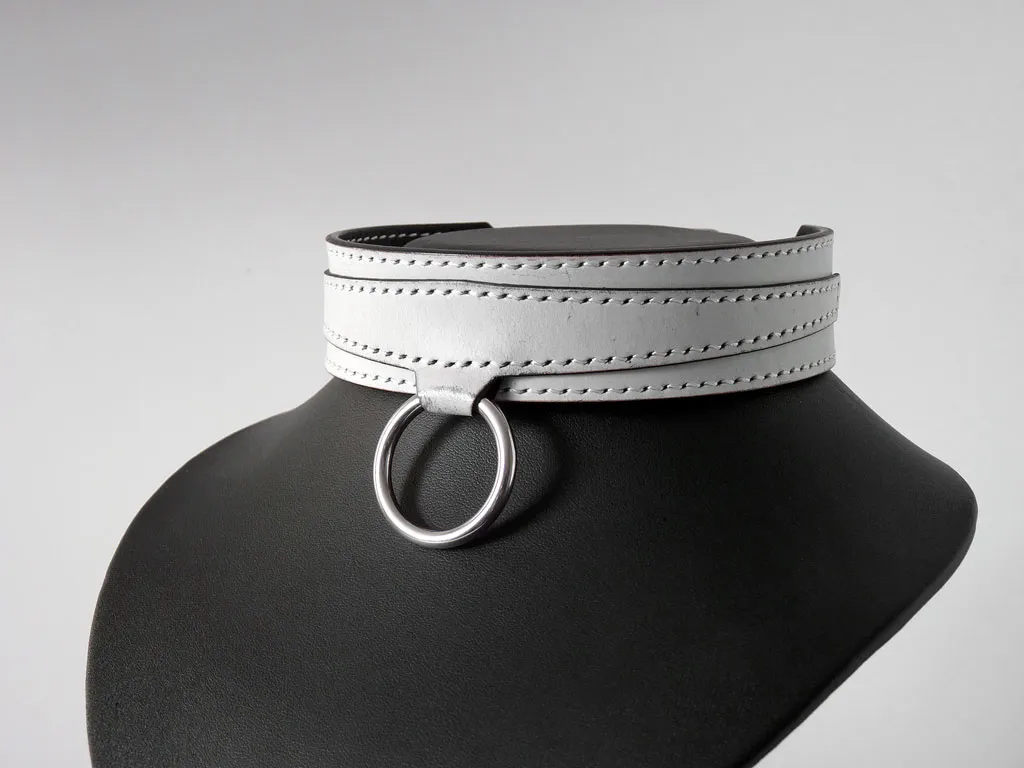 Un collier d’appartenance original réalisé dans un cuir spécial recouvert d’une fine couche de cire blanche très douce au toucher, cette cire s’estompe naturellement à l’usage ou en frottant le cuir. Petit à petit le cuir révèle de façon unique sa couleur, ici du noir.